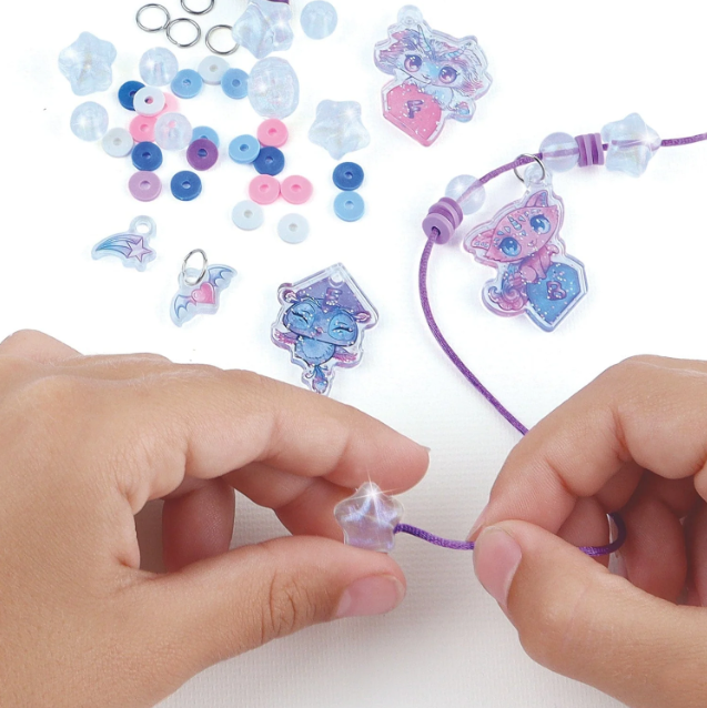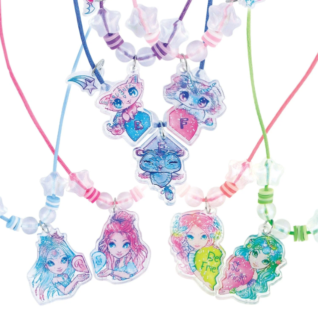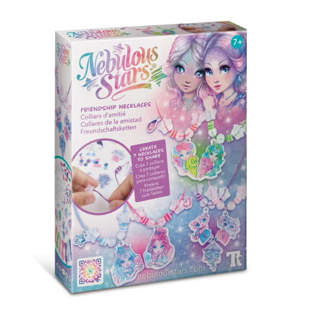 Exprimez une amitié unique avec ce kit créatif Nebulous Star qui vous permet de fabriquer 7 colliers d’amitié personnalisés. Tu y trouveras 14 breloques en acrylique imprimé, 98 perles tendance, 7 cordons de soie de couleurs variées, 7 fermoirs de sécurité détachables, ainsi que 15 anneaux et des instructions en couleurs. Simple, amusant et plein de style, c’est une activité créative et significative à partager entre amis .