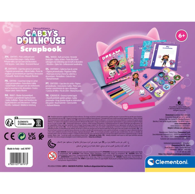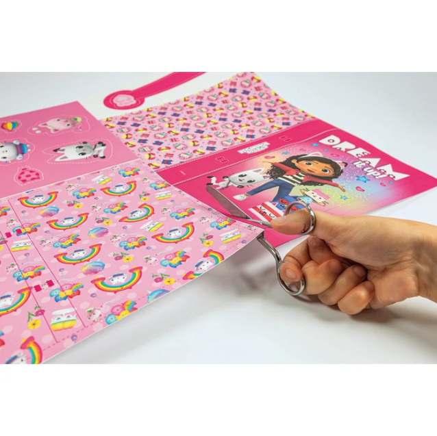 Assemblez et personnalisez un journal intime dans le style de Gabby. Nombreuses pages a colorier et a customiser avec des autocollants. Contient une couverture, des pages a personnaliser, des autocollants, des décorations a découper, des feutres, des crayons, un ruban et des paillettes colorées. Pour enfant de 6 ans et plus.