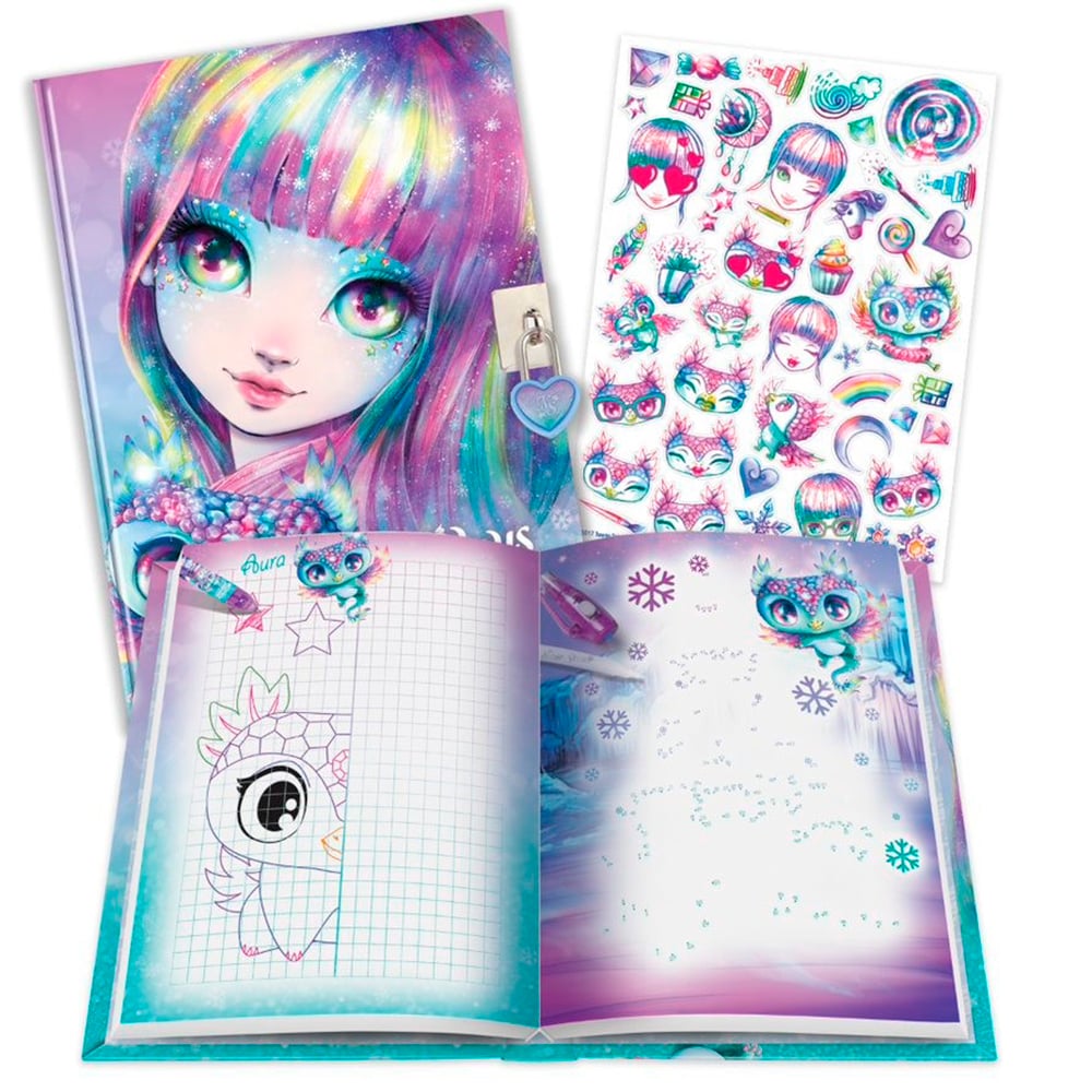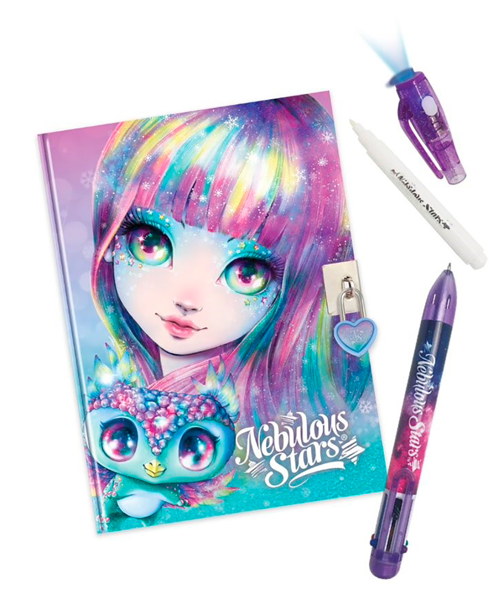 Le joli journal de Nebulous Star est décoré d’une illustration colorée d’Isadora et d’Aura, une créature fantastique et dragon. Il comprend un stylo à bille avec plusieurs couleurs et un stylo magique lumineux pour écrire des secrets invisibles.