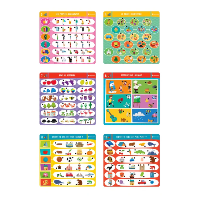 Le coffret Mon Stylo interactif avec ses fiches colorées et amusantes a été conçu pour les enfants de 3 à 5 ans , Grâces aux 12 activités , il permettra l’acquisition et la consolidation des compétences cognitives et logiques de l’âge préscolaire . Les thématiques sont variées et les difficultés sont progressives.