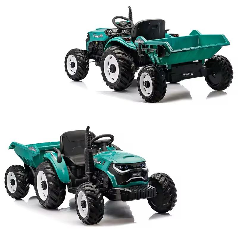 Tracteur électrique 12V avec remorqueur et télécommande – Vert