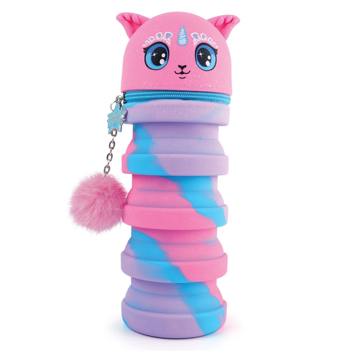 Une trousse transformable peut être agrandie ou réduite. Dépliée, elle est parfaite pour l’école ou une promenade, et pliée, elle est parfaite pour être posée sur un bureau ou une table.