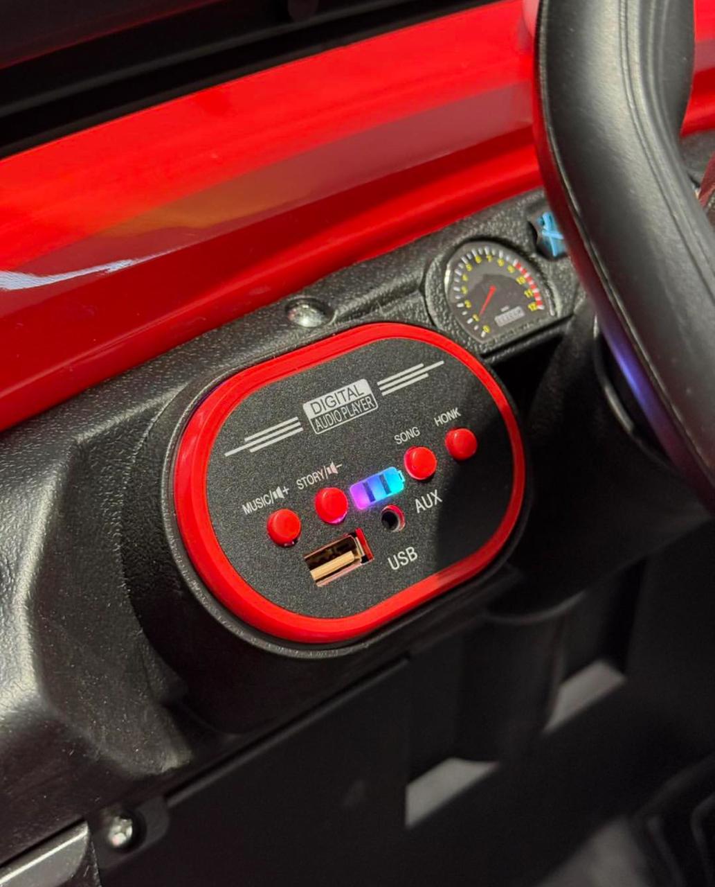 Cette voiture prend en charge la connexion USB ou téléphonique pour écouter les chansons que les enfants adorent.