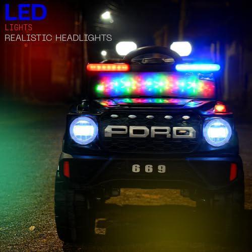 Cette voiture électrique offre un design cool et réaliste. Il comporte des éléments réalistes tels que des phares fonctionnels, un volant et une pédale réactive, offrant une expérience de conduite immersive. Alimentée par 4 moteurs hautes performances et une batterie rechargeable de 12 V, cette voiture électrique pour enfants offre de 60 à 90 minutes d’autonomie avec une charge complète. Les roues à bande de roulement offrent une excellente adhérence, ce qui les rend idéales pour divers terrains, notamment les pâturages et les routes asphaltées.