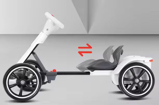 Cette voiture électrique pour enfants se plie et se déplie facilement en un seul geste, facilitant ainsi son rangement et son transport. Son format pliable compact en fait un choix pratique pour les parents et un véritable plaisir pour les enfants.